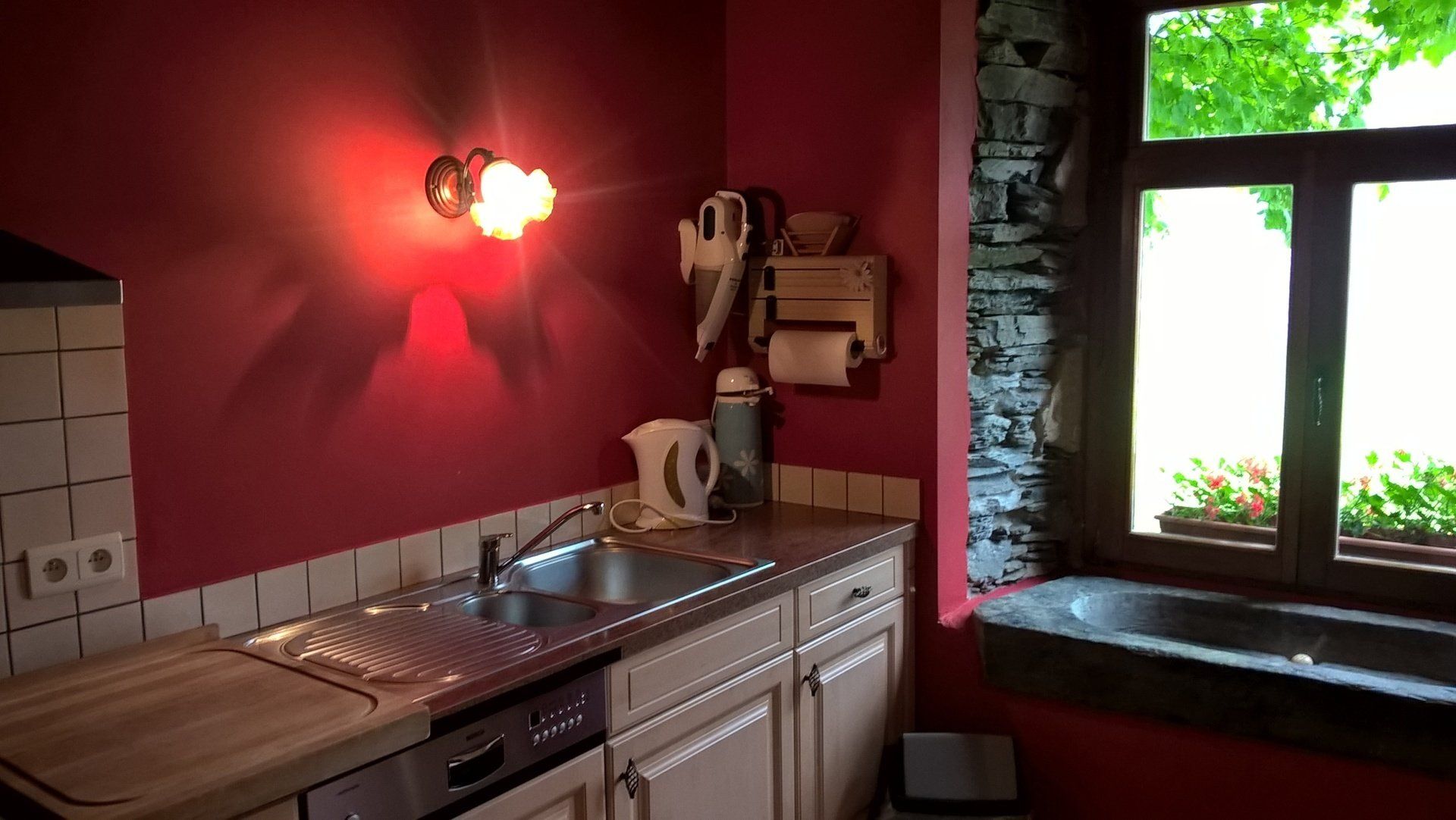 Binnen dit typisch Ardeens gebouw treft u een ruim vakantiehuis voor 9 personen met een grote eetkamer met open haard, een volledig ingerichte keuken met oven en vaatwasser, een grote bergruimte met tuinmeubelen, wasmachine en diepvries, 1 slaapkamer met douche op het gelijkvloers, 2 slaapkamers en een badkamer met ligbad op de eerste verdieping. Proximus-tv en WIFI beschikbaar op het gelijkvloers.